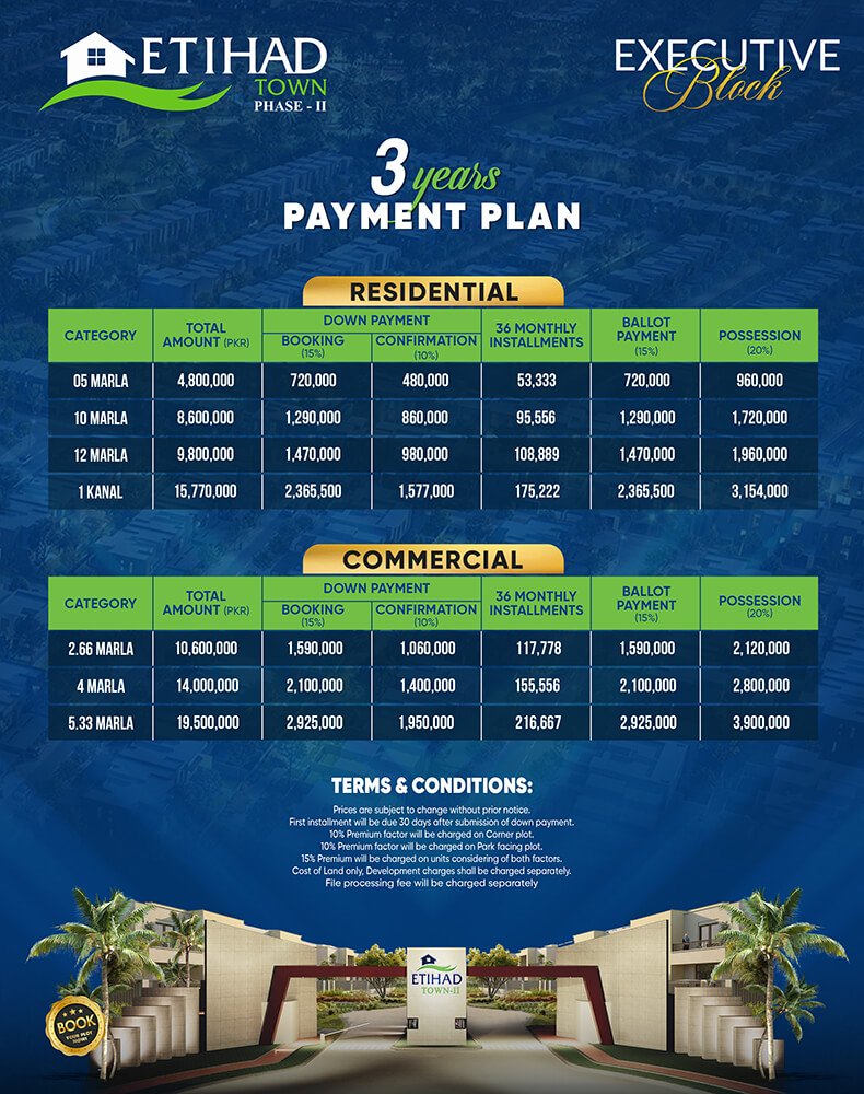 The thoughtfully structured payment plan of Etihad Town Phase 2 is tailored for investors and families seeking flexibility and ease. It’s designed to minimize financial stress, offering clear and customer-friendly terms that support a wide range of budgets, making the journey to owning property straightforward and hassle-free. With its central location to popular housing societies like DHA and Bahria Town, Etihad Town Phase 2 Lahore epitomizes convenience. There is a lot of potential here in Etihad Town Phase 2. You can securely invest in Etihad Town Phase 2.